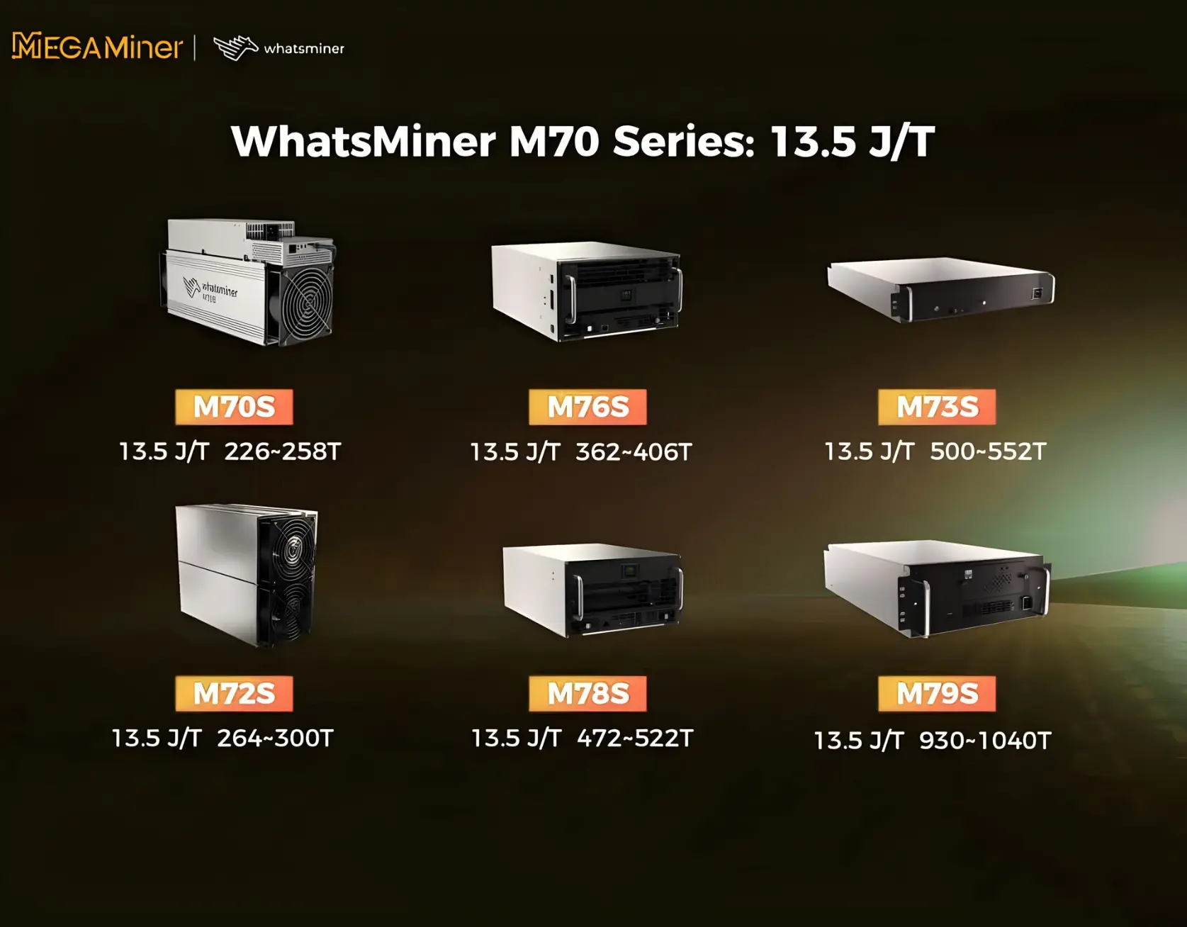 M70 Series 214 – 1040 TH/s 12.5 – 14.5 J/TH