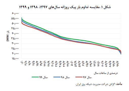 مقایسه تداوم بار پیک روزانهی سالهای ۱۳۹۷ تا ۱۳۹۹: